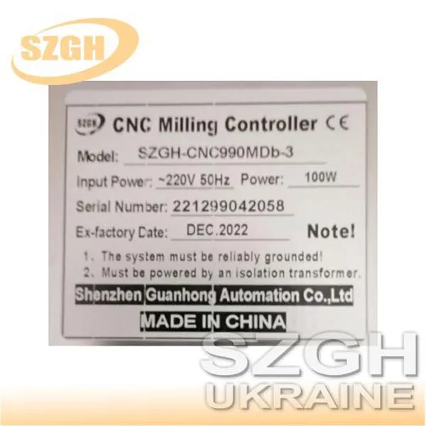 SZGH-CNC990MDb-3 - це 3-осьовий економічний, професійний фрезерний контролер з ЧПУ та системою управління, який може керувати трьома осями подачі. Контролер оснащений 8,4-дюймовим РК-дисплеєм (800x600), двома аналоговими виходами для кутового шпинделя, характеризується високошвидкісною інтерполяцією 2 мс за збереження точності прецесії 1 мкм, підтримує функцію автоматичної заміни інструменту ATC.