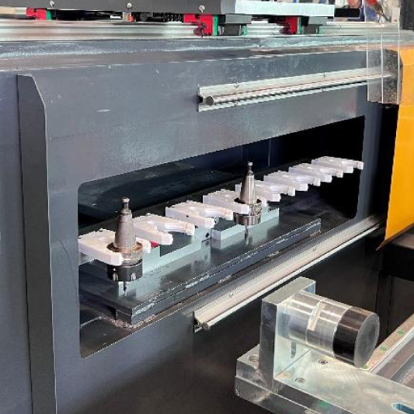 • Обробний центр A9-2000-3+1 у своїй конструкції має 8 прихованих магазинів інструментів для різноманітної обробки пазів.