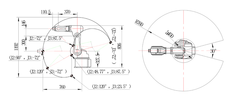 ДІАПАЗОН РУХУ РОБОТА SZGH_T750-B-6