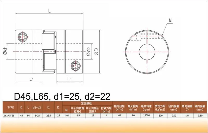 муфта гнучка муфта кулачкова D45 L65 d1=25 d2=22 комплектуючі для ЧПУ сервосистеми SZGH