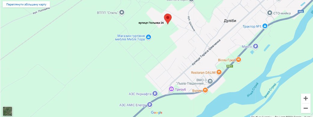 82434, Україна, Львівська область, Стрийський р-н, с. Дуліби, вул. Польова, будинок 26